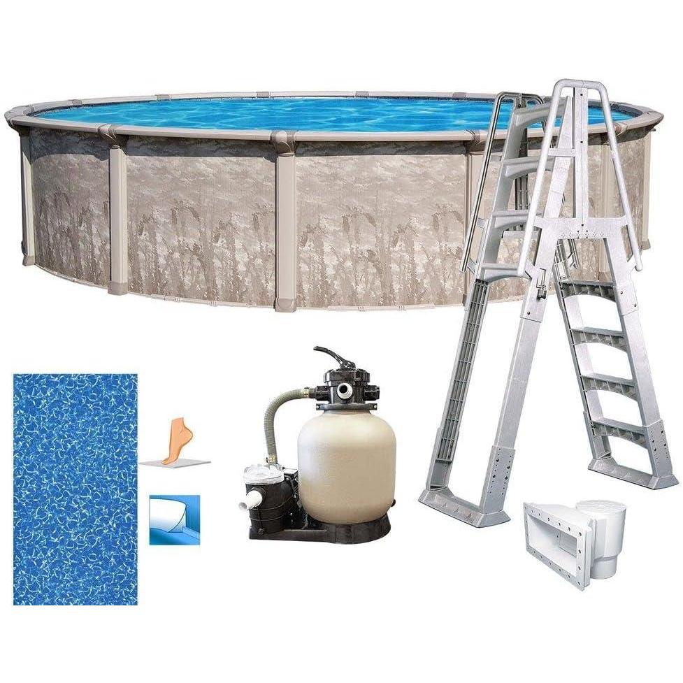 imageIn The Swim 15 Round Above Ground Swimming Pool  Marina Package  Featuring Sand Filter Pump System and AFrame LadderExcursion