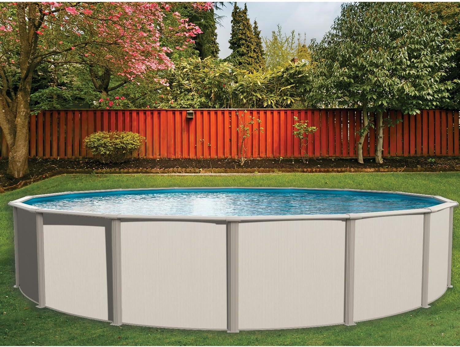 Enhance Your Backyard: Transform your outdoor space with our 24' Round Above-Ground Swimming Pool, featuring sleek 48-inch walls in a calming sand color.