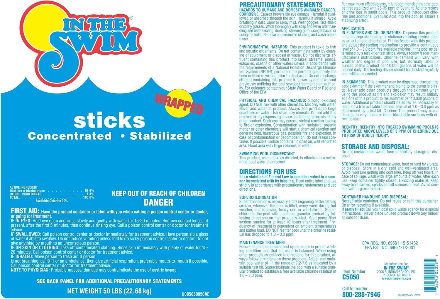 imageIn The Swim 4 Inch Chlorine Sticks for Sanitizing Swimming Pools  Individually Wrapped Slow Dissolving Stabilized Chlorine Sanitizer  90 Available Chlorine 99 Trichlor  10 PoundsChlorine  Shock