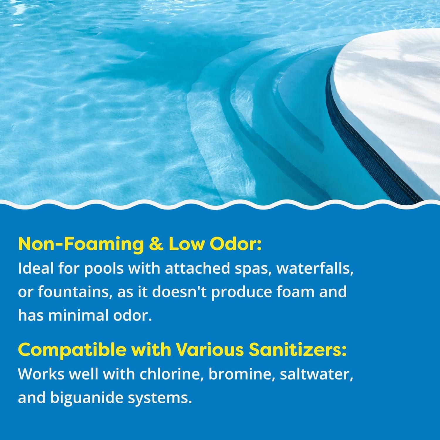 Works nicely for pools using well water. Compatible with various sanitizers such as chlorine, bromine, biguanide, and salt systems.