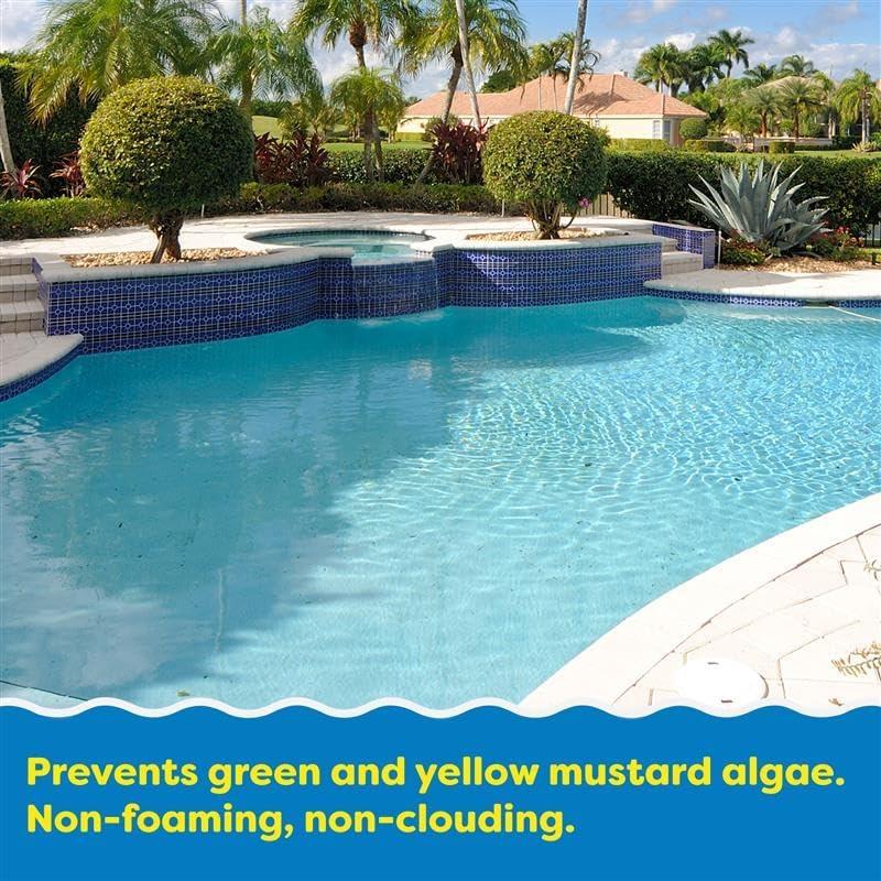 Effective Algae Control: Prevents and controls green and yellow mustard algae growth in both inground and above-ground pools.