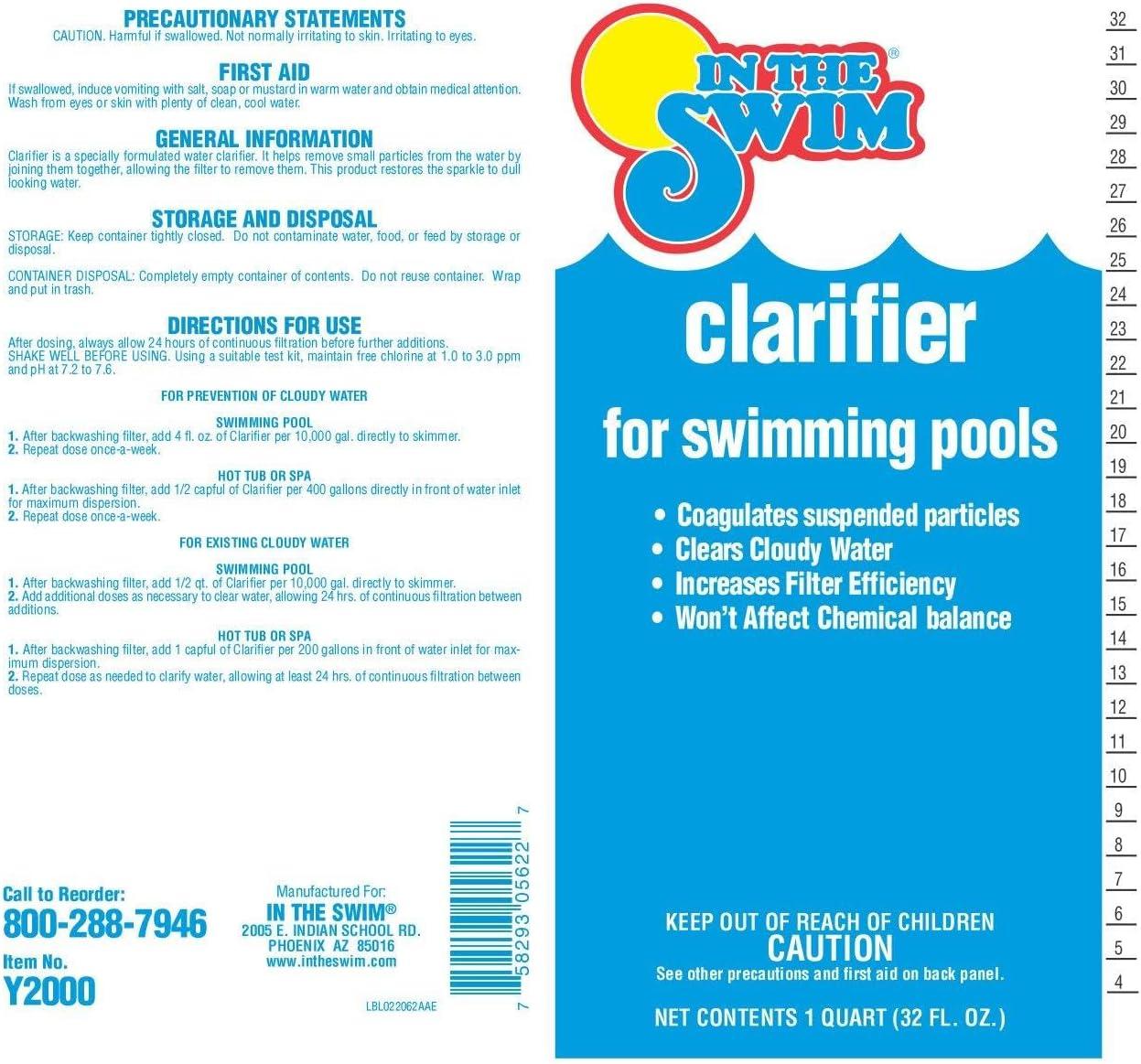 imageIn The Swim Clarifier for Above Ground and Inground Swimming Pools  Coagulates Debris to Clear Swimming Pool Water  Increases Filter Efficiency  1 GallonSingle 1 Quart
