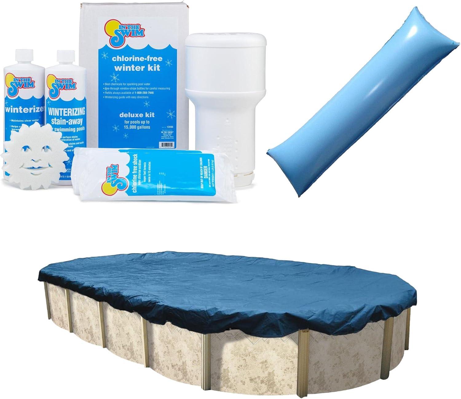 Provides a comprehensive and easy solution for winterizing your swimming pool, including a 18'x34' Oval Economy Winter Cover and a 35k gallon closing kit.
