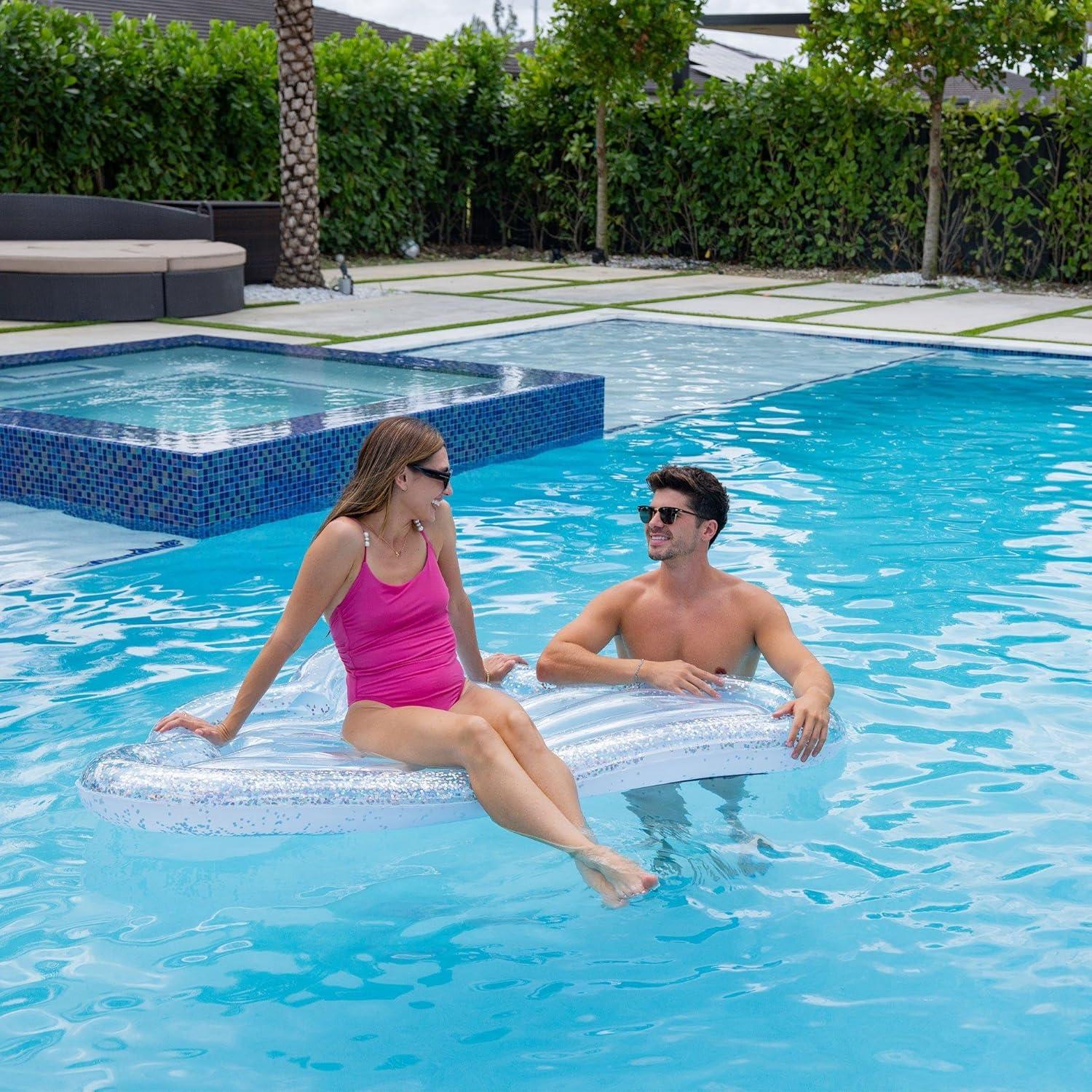 Don’t miss out on our limited-time offer: buy In The Swim Glitter Heart Inflatable Pool Tube Float – 46" Heart-Shaped Swim Ring with Holographic Glitter – Durable PVC Float for Adults & Teens – Pink Sparkle Pool Lounger(Cloud), get {accessory} 50% off!