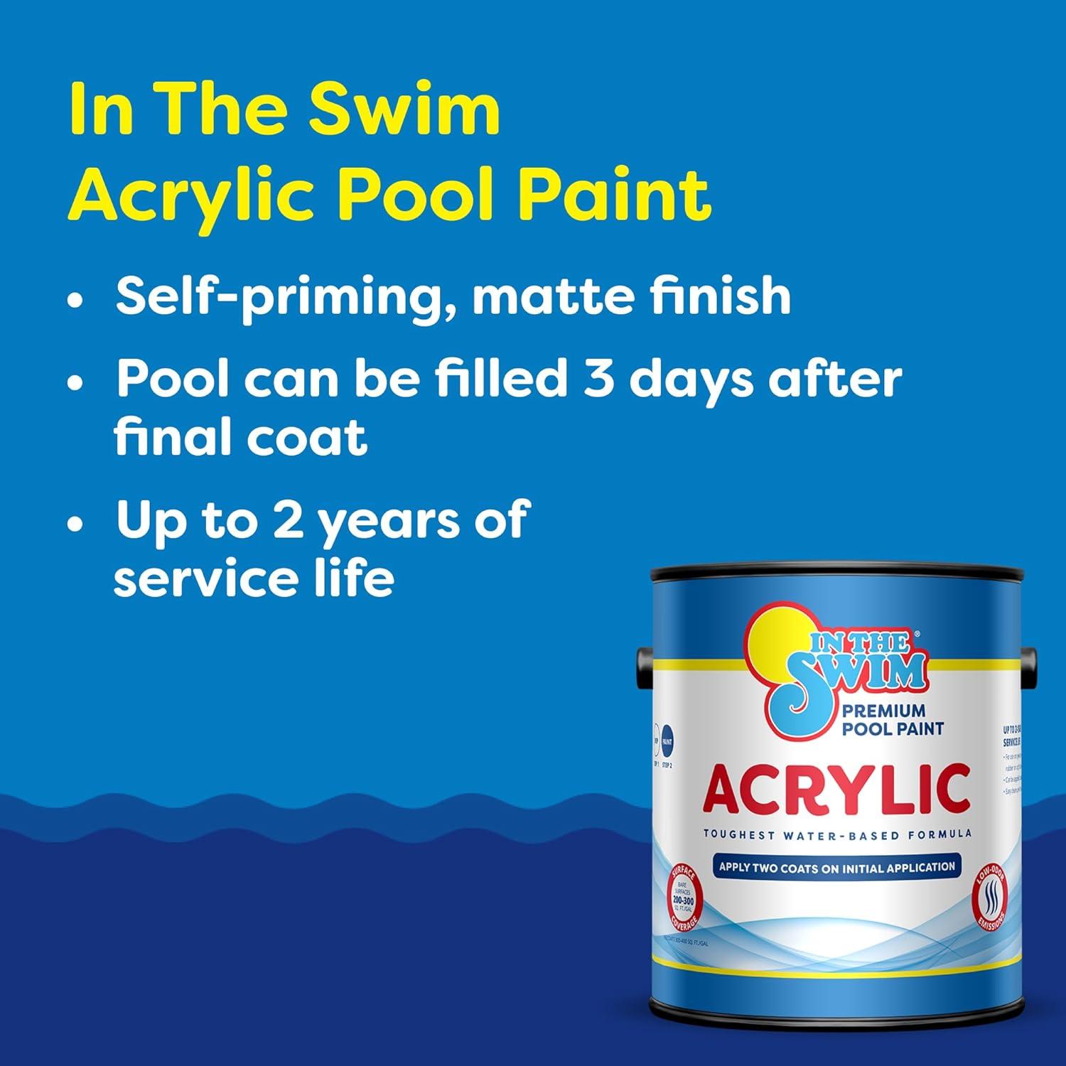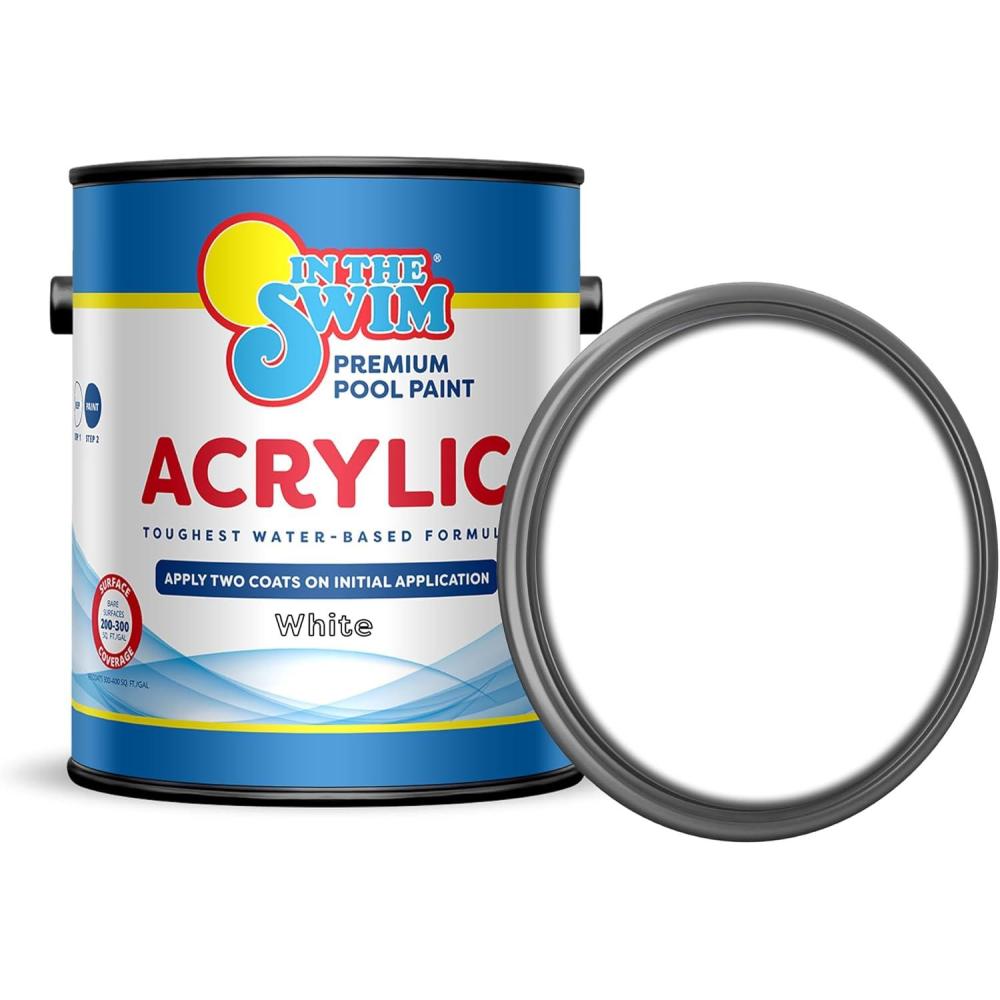 In The Swim Non-Slip Acrylic Swimming Pool Paint - White - For Smooth, Bare Cement Surfaces, Previously Acrylic Coating, or Rubber Base Paint Coating - 1 Gallon