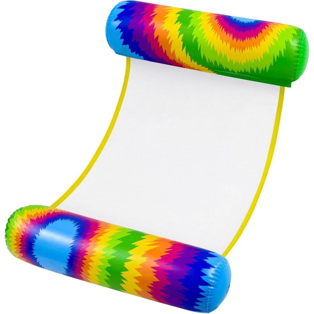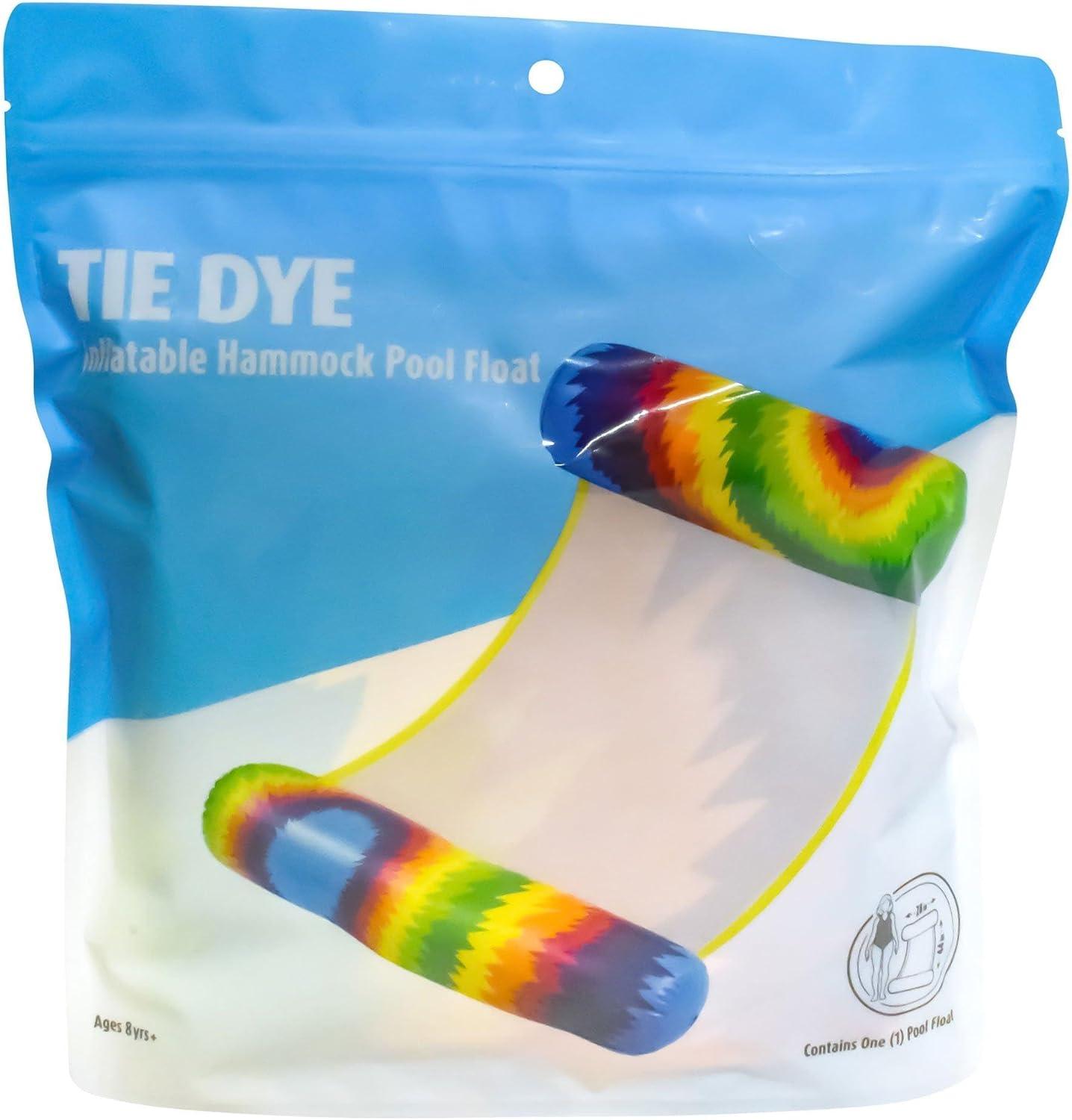 In The Swim Star Striped Inflatable Square Hammock - Red, White, and Blue Pool Float - Comfortable Backrest and Armrests, Perfect for Travel(Groovy Tie Dye)