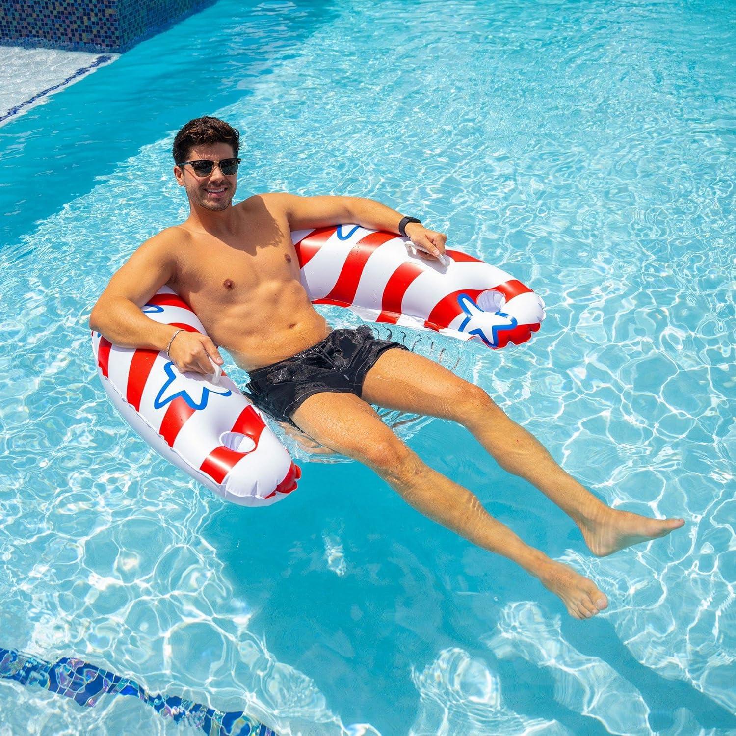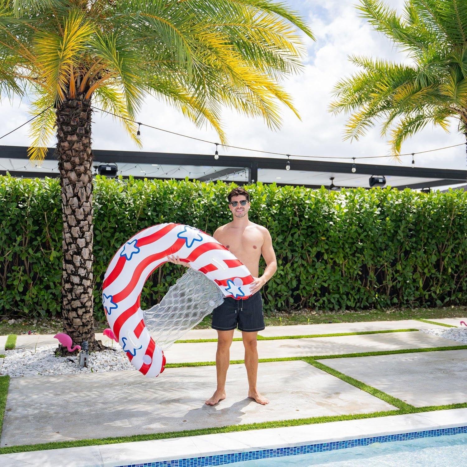 Patriotic Pool Lounger: Features a bold red, white, and blue design inspired by the American flag—perfect for celebrating summer holidays