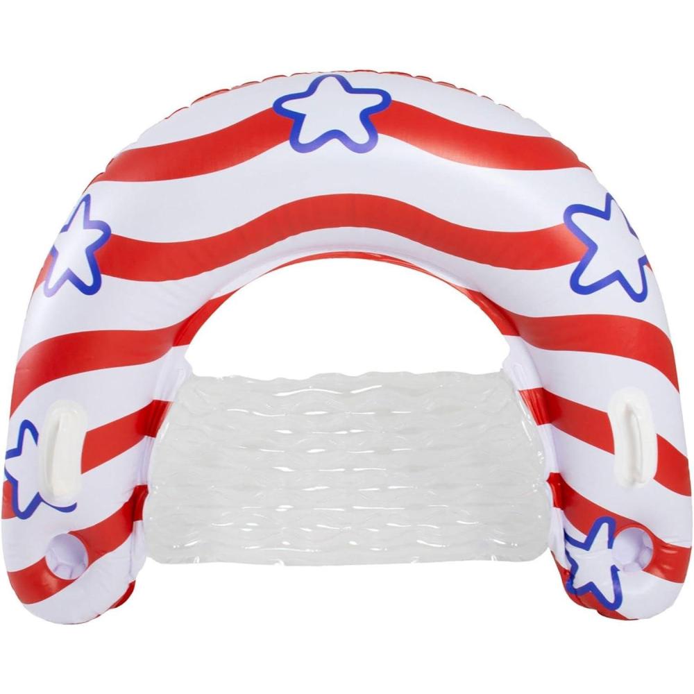 Celebrate freedom and float in total comfort with the In The Swim Stars and Stripes Inflatable Sun Chair Pool Float. Designed with an eye-catching red, white, and blue star-spangled pattern, this jumbo 48-inch float is the ultimate way to lounge during summer holidays or any sunny day at the pool. The built-in backrest adds ergonomic support, letting you relax for hours in style. Constructed from durable PVC, this float is tough enough for any backyard bash or lakeside getaway. Whether you're floating solo or joining a pool party, this patriotic float brings comfort, color, and American spirit to every splash.
