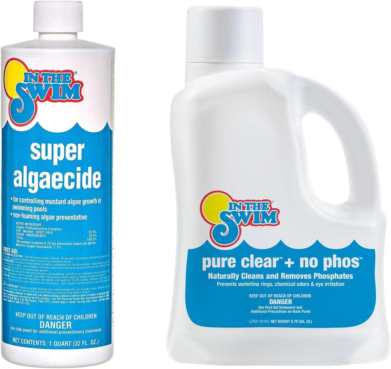 In The Swim Super Algaecide for Above Ground or Inground Swimming Pools – Low Odor, Non-Foaming Preventative for Yellow/Mustard Algae in Swimming Pools – 7.1% Chelated Copper – 1 Gallon(Algaecide + PC + NoPhos)