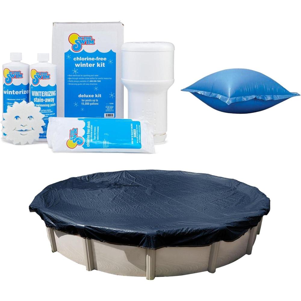 Provides a comprehensive and easy solution for winterizing your swimming pool, including a 24' Round Economy Winter Cover, 15k gallon closing kit, and 4'x'4' air pillow.