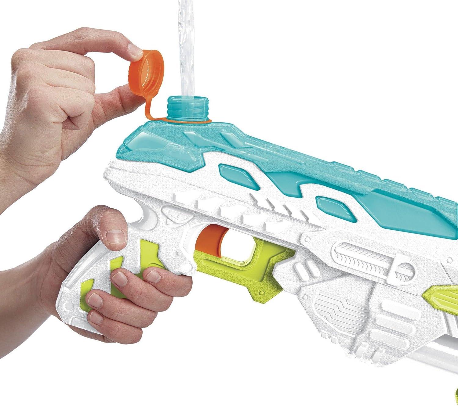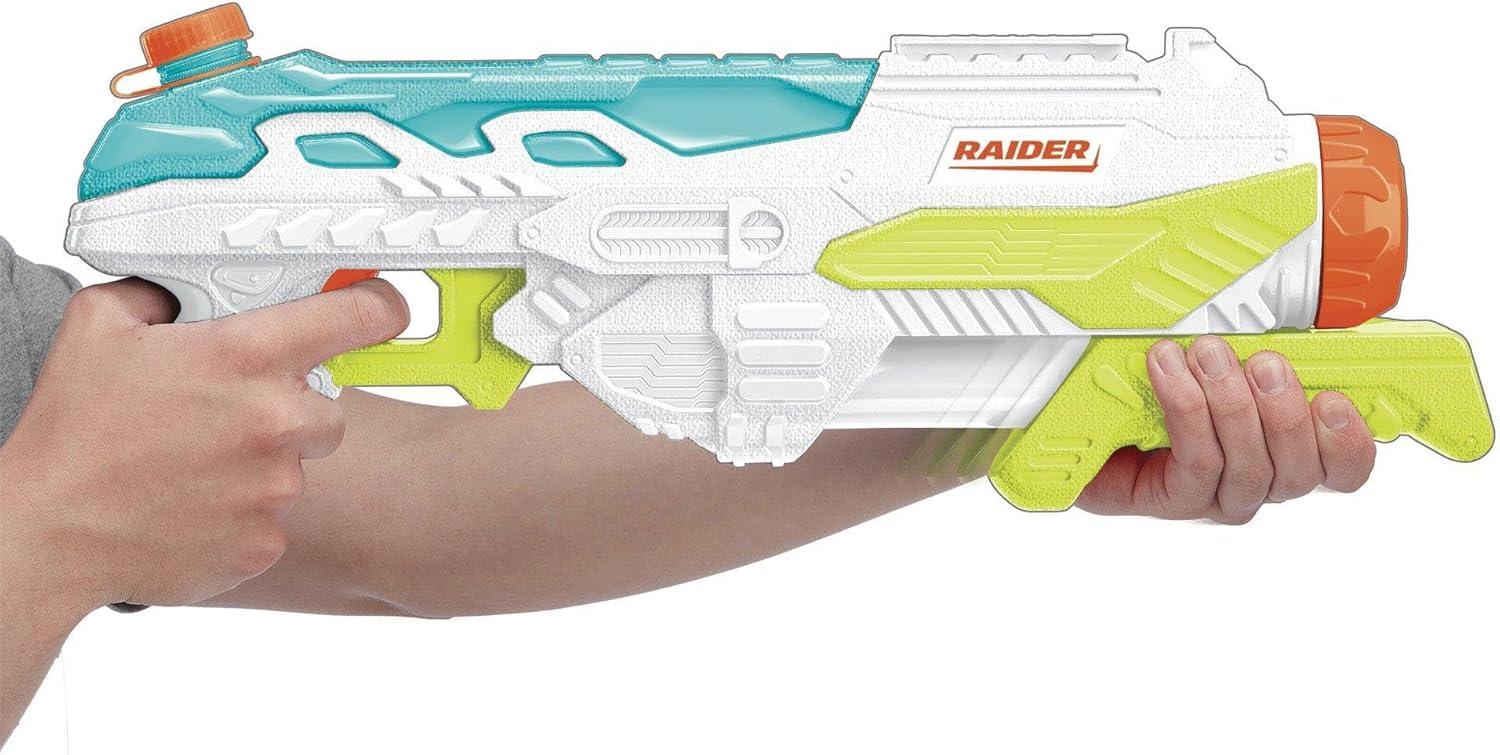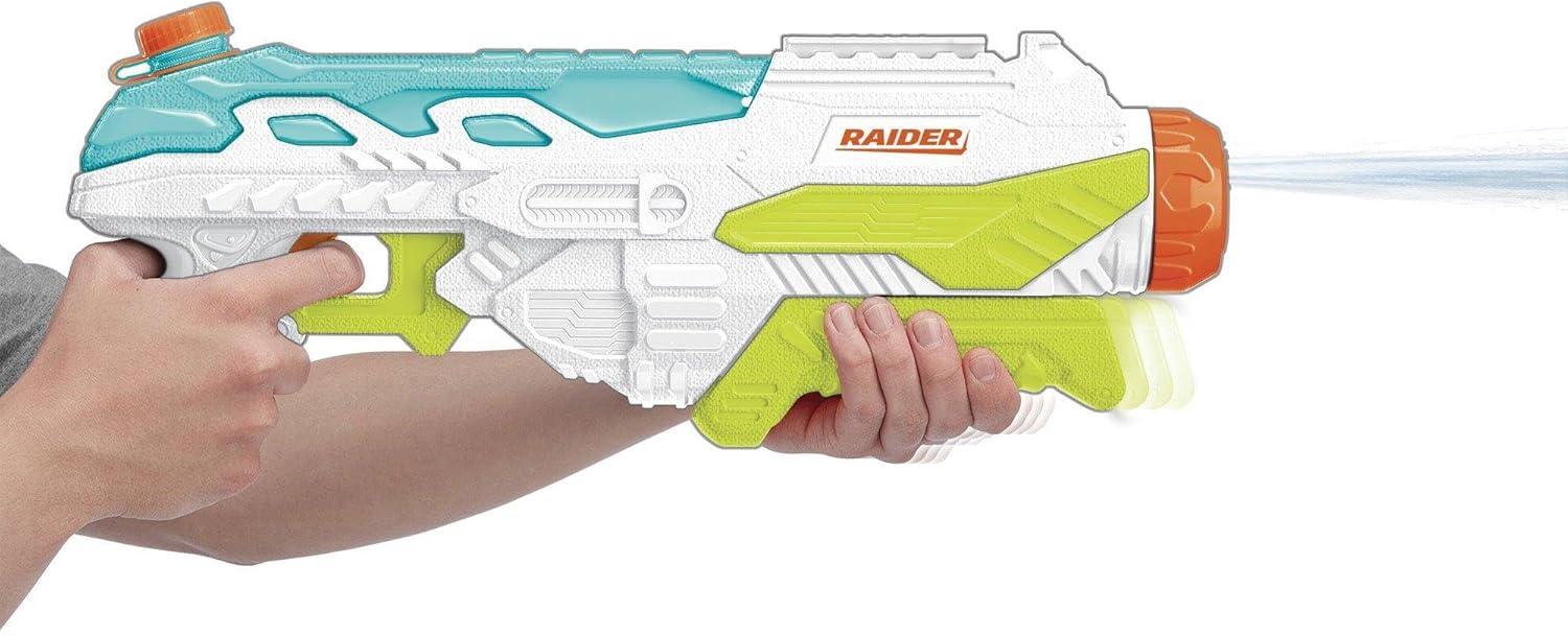 Gear up for epic water battles with the In The Swim Water Warriors Raider Water Blaster! This power pump water blaster features adjustable nozzles for customizable action—choose between a long-distance stream for precision or a wide blast for soaking fun. With a 30-ounce capacity and the ability to shoot water up to 35 feet, you’re all set for hours of high-performance soaking. The translucent water tank lets you monitor your water level so you’re never caught off guard. Perfect for kids ages 4+, this lightweight and durable water blaster is ideal for backyard, pool, or beach use. Whether you're aiming for precision or total drenching action, the Raider Water Blaster has got you covered!